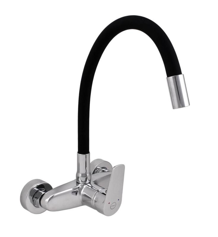 Upptäck Aquanello Casa Väggmonterad köksblandare i krom med hög flexibel pip CR-1301-CS, ett mästerverk av design och funktionalitet. Denna vackra köksblandare, tillverkad av högkvalitativ mässing, lyser i en förkromad yta som ger varje kök ett modernt och elegant utseende.