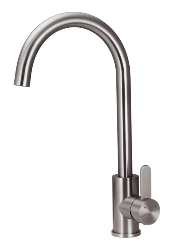 Upplev den perfekta kombinationen av stil och funktionalitet med Aquanello Forma Massiv rostfri enkelgreppsblandare för kök med rund utloppsrör SS-1002-FM. Denna designkran från det välrenommerade varumärket Aquanello är ett riktigt blickfång i varje kök. Kranen är tillverkad i högkvalitativt rostfritt stål (RVS), vilket inte bara ger ett modernt utseende, utan också garanterar hållbarhet och enkel skötsel.