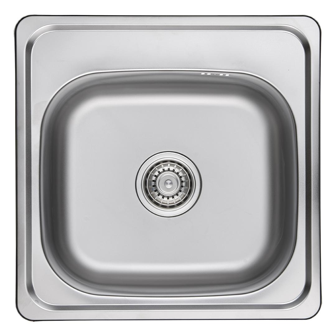 Ausmann Basic rostfritt stål inbyggnadsdiskho 48x48 cm med kranhål inklusive sifon 1208957000