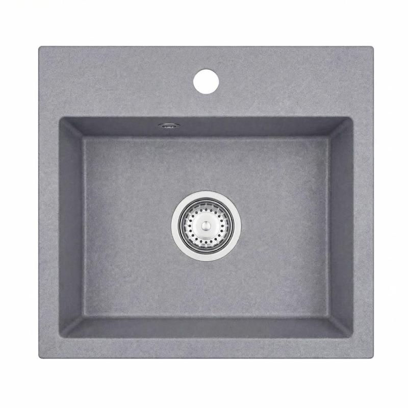 Graniteland Nera Granit Diskbänk 45x42 cm Grå Infälld med Kranhålsbänk och Rostfri Plugg 1208971436