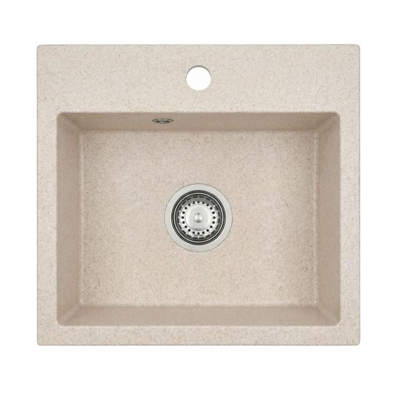 Graniteland Nera Granit Diskbänk 45x42 cm Beige Montering med Kranhålsbänk och Rostfritt Stålplugg 1208971434