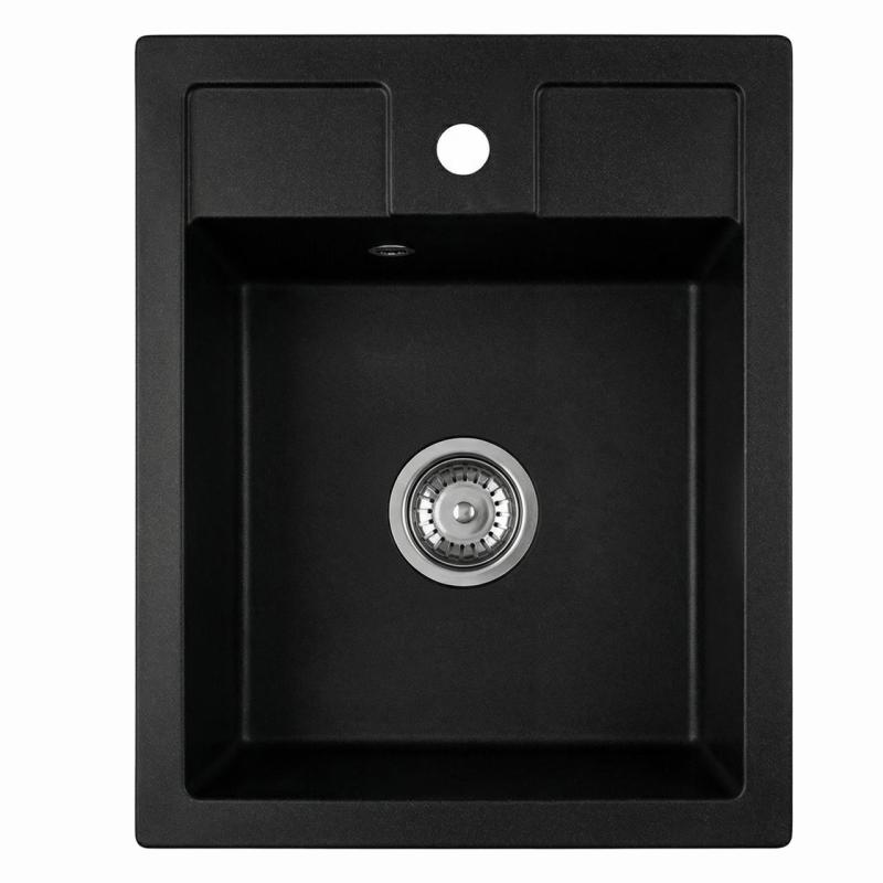 Graniteland Prest Granit svart diskbänk Tapwing med kranhålsbänk påbyggnad 400x500mm med Rostfritt Stål Plugg 1208971421