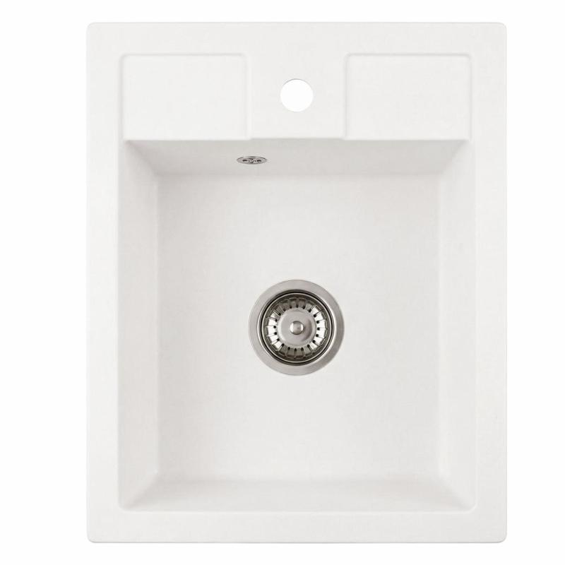 Graniteland Prest Granit vit diskbänk Tapwing med kranhålsbänk påbyggnad 400x500mm med RVS Plug 1208971424