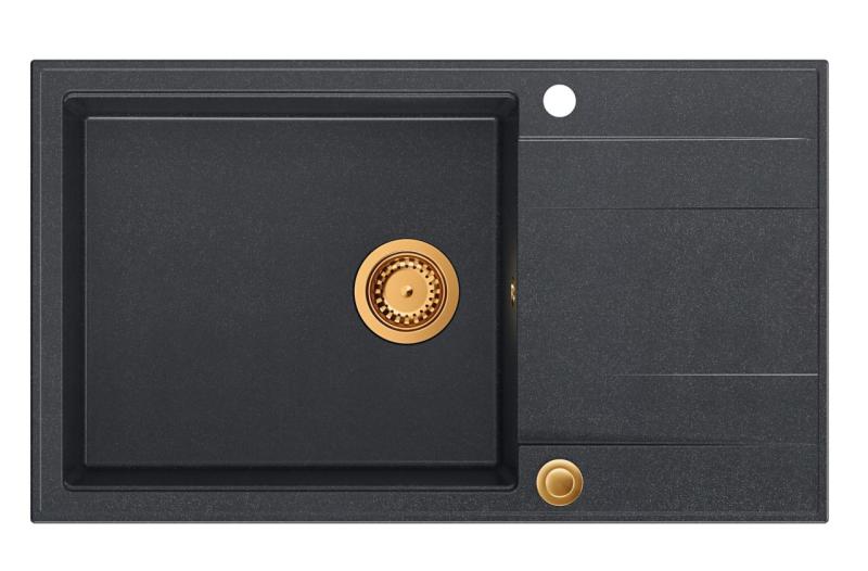 Quadri Luton antracit granit stor inbyggnad diskho med avrinning, vändbar 86x50 cm med kopparplugg 1208967335