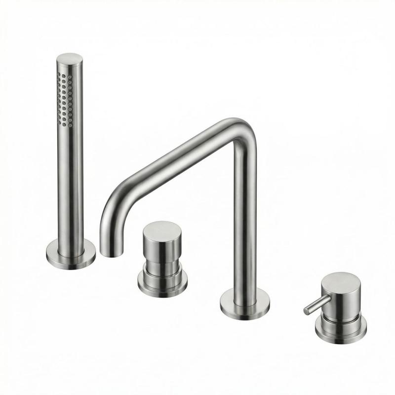 Waterevolution Flow 4-håls Badkarblandare för Badkarsmontering helt i Rostfritt Stål H T138HIE